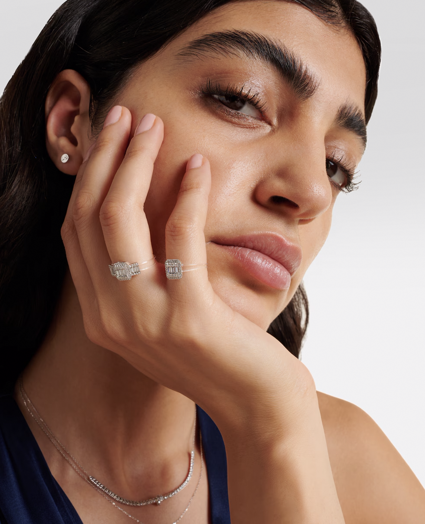 Persée Paris presents its iconic ring with a delicate shape composed of baguette diamonds, from the dreamlike Floating collection.