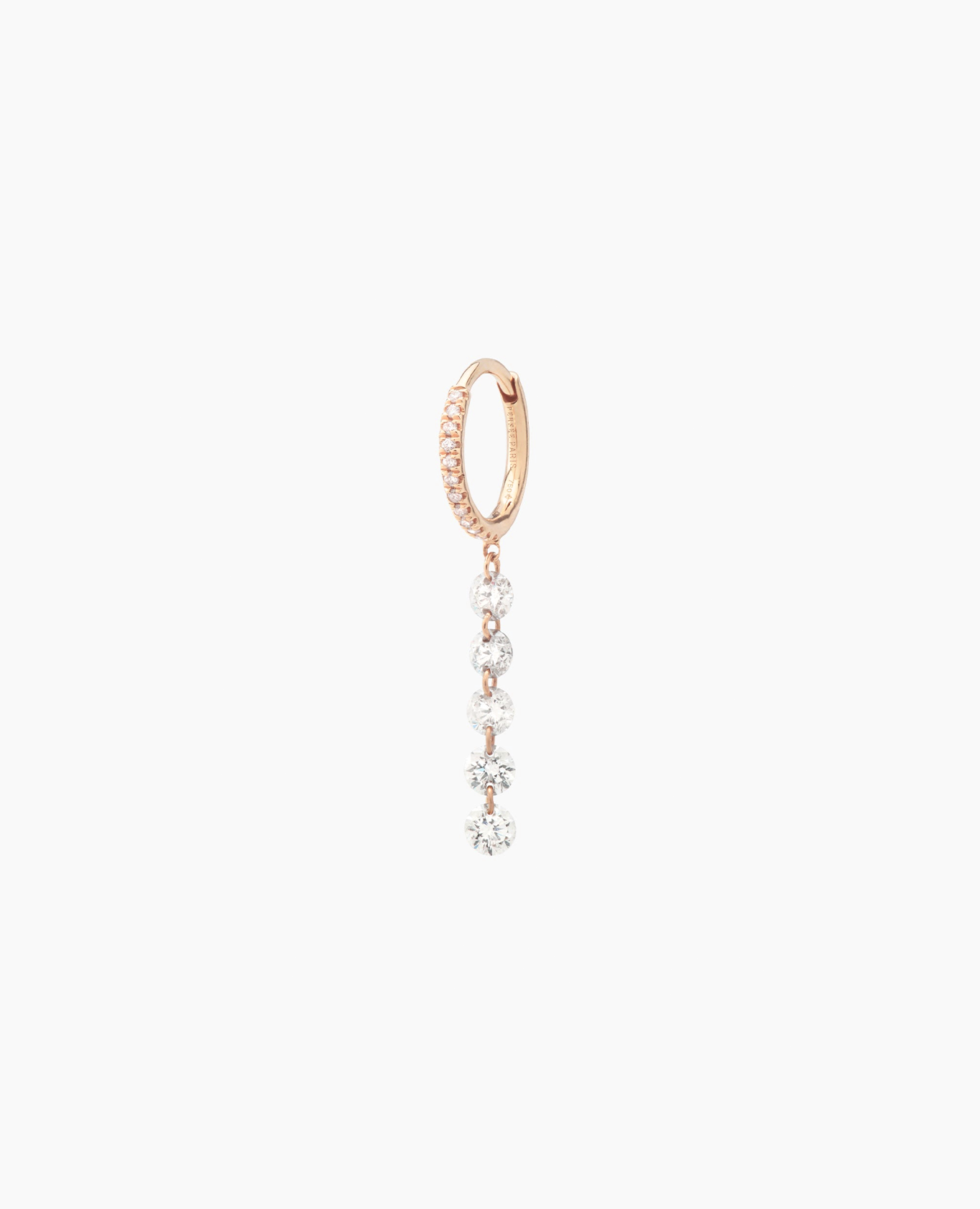 Mini earring composed of a diamond-paved ring and 5 hanging pierced diamonds.