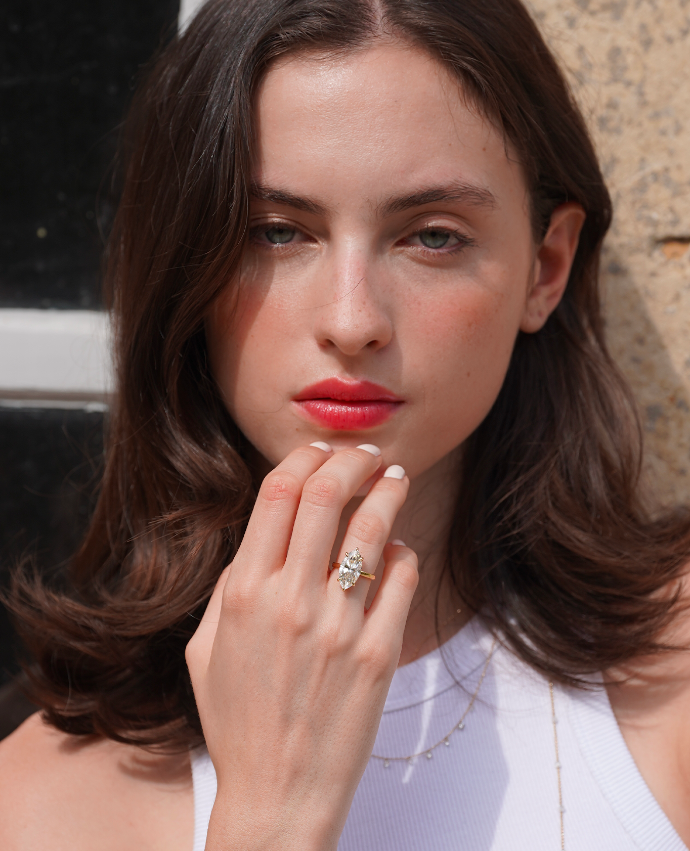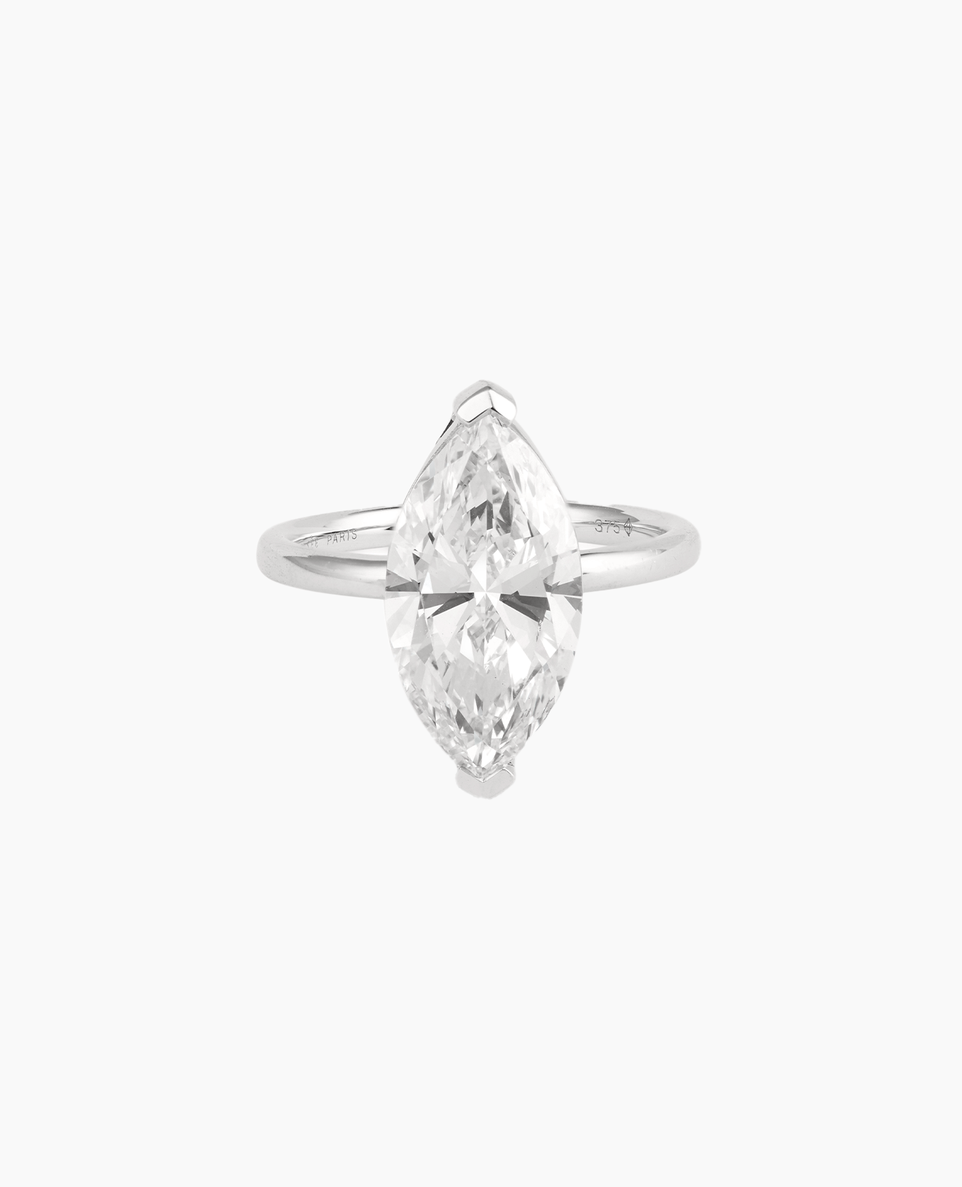 Élancée et lumineuse, cette bague met à l'honneur la taille marquise dans une version pure et aérienne.