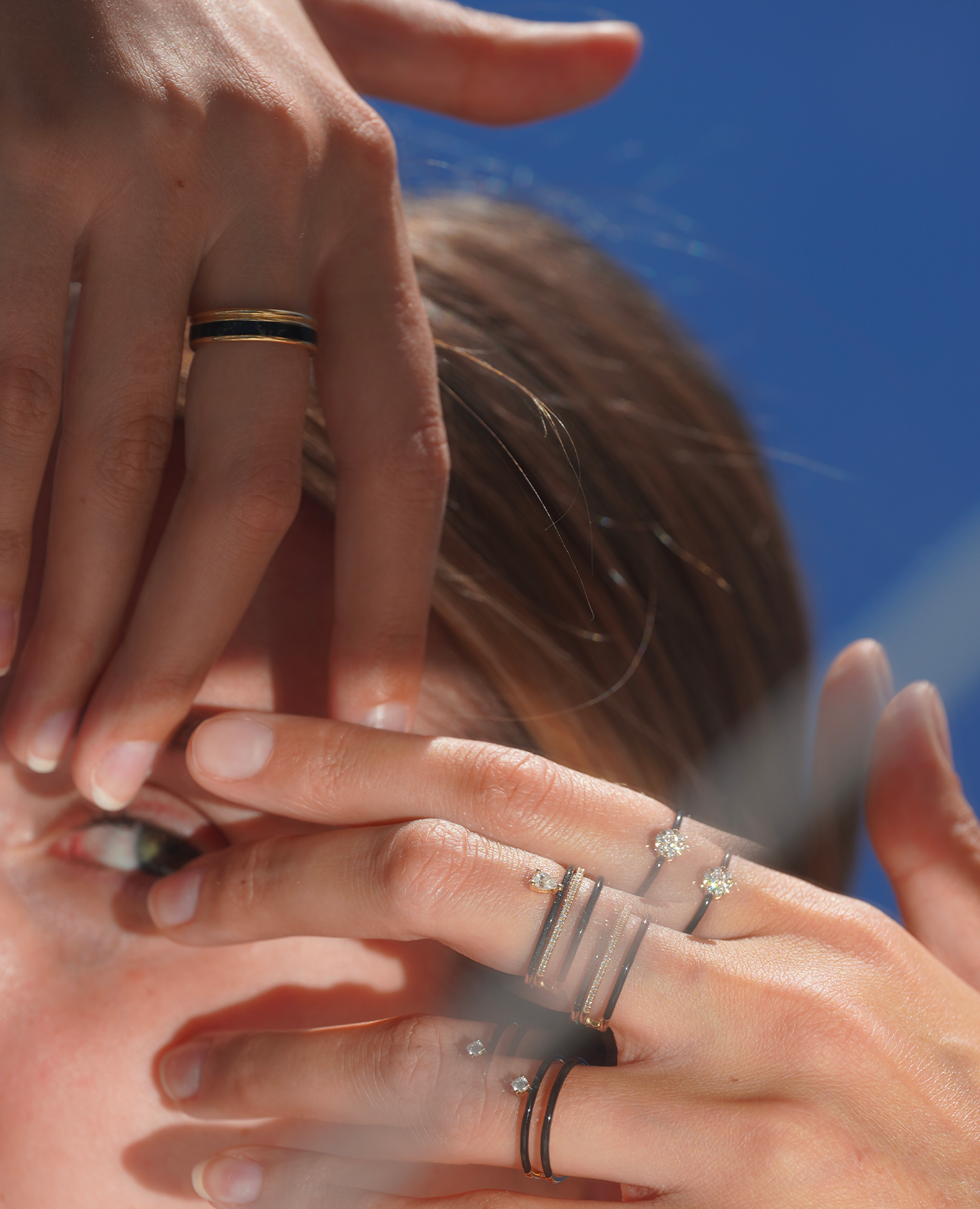 Semblable à une laque précieuse, huit teintes d’émail aux couleurs néons se posent sur des bijoux singuliers et modernes.