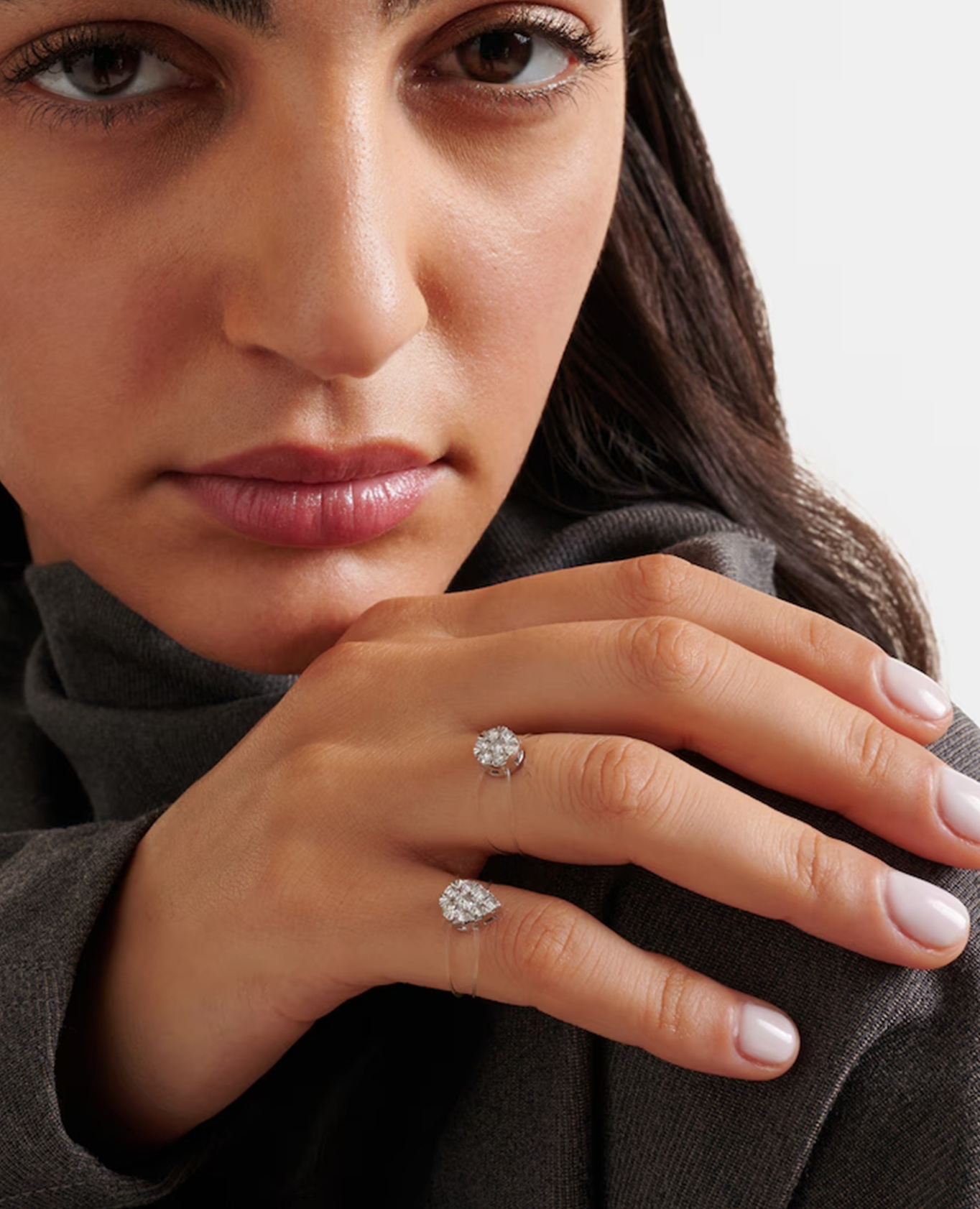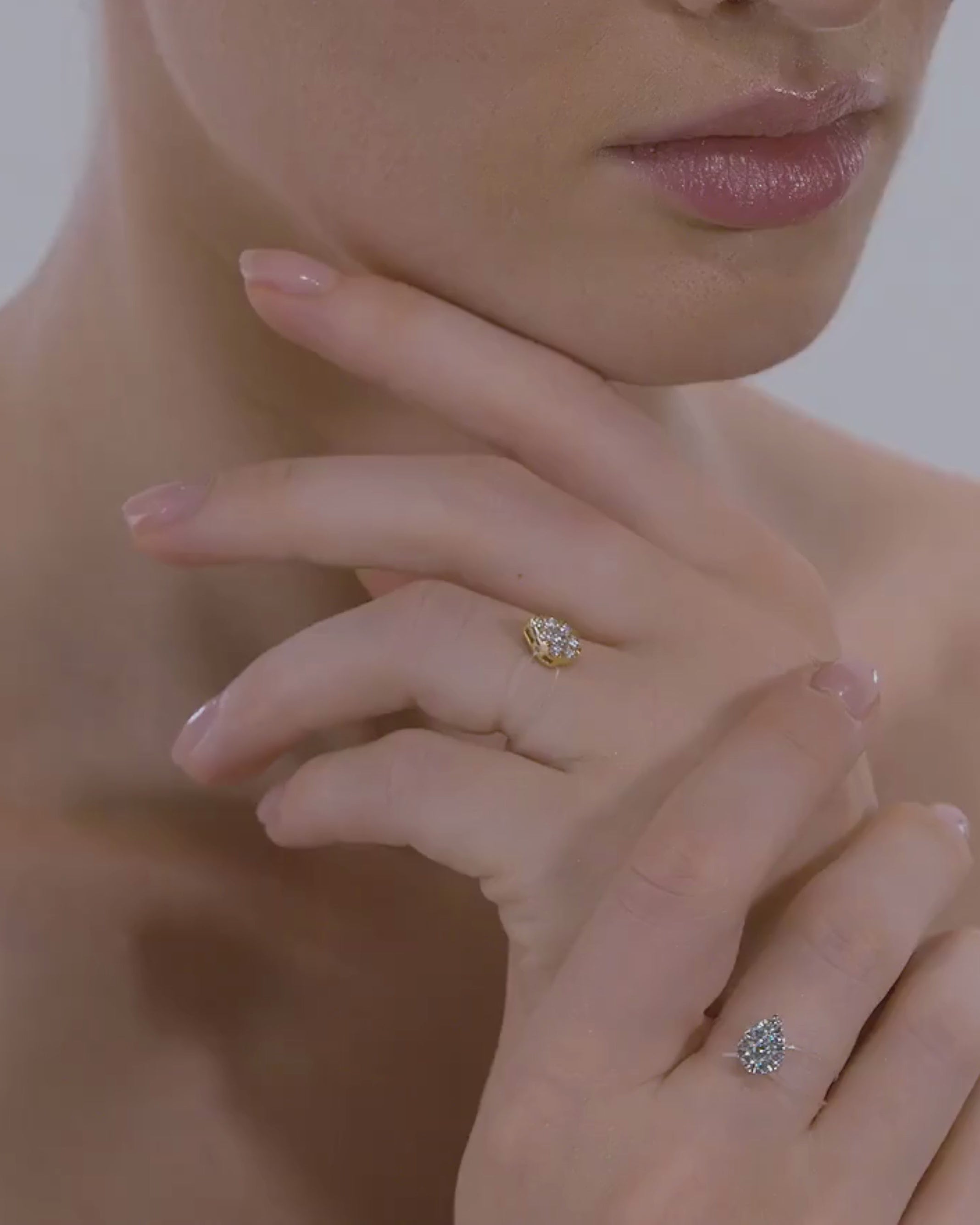 Persée Paris présente sa bague iconique à la délicate forme de poire, issue de la collection onirique Floating.
