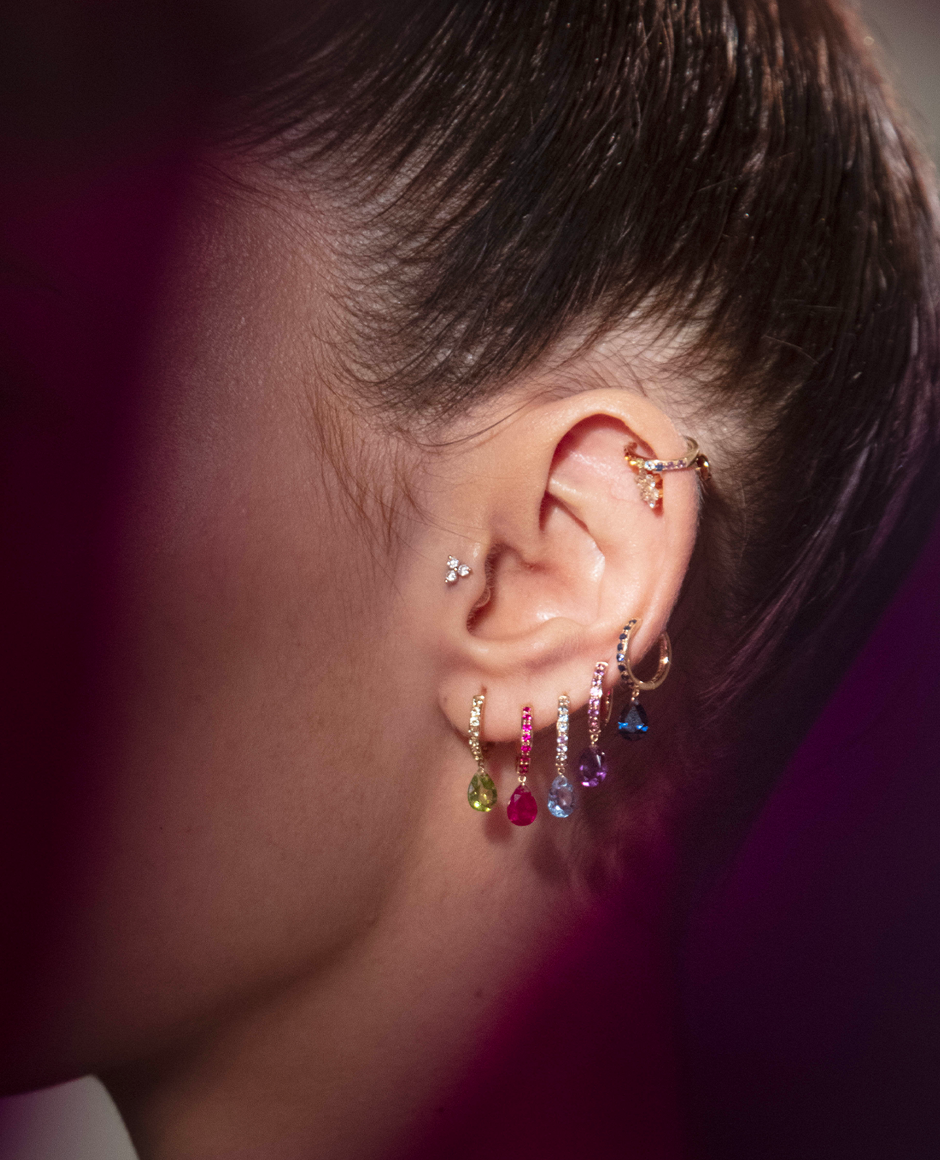 Ainsi, dans la collection Piercing by Persée, la pierre nue est mise en lumière au travers d'une mini boucle d'oreille à la fois précieuse et rebelle.