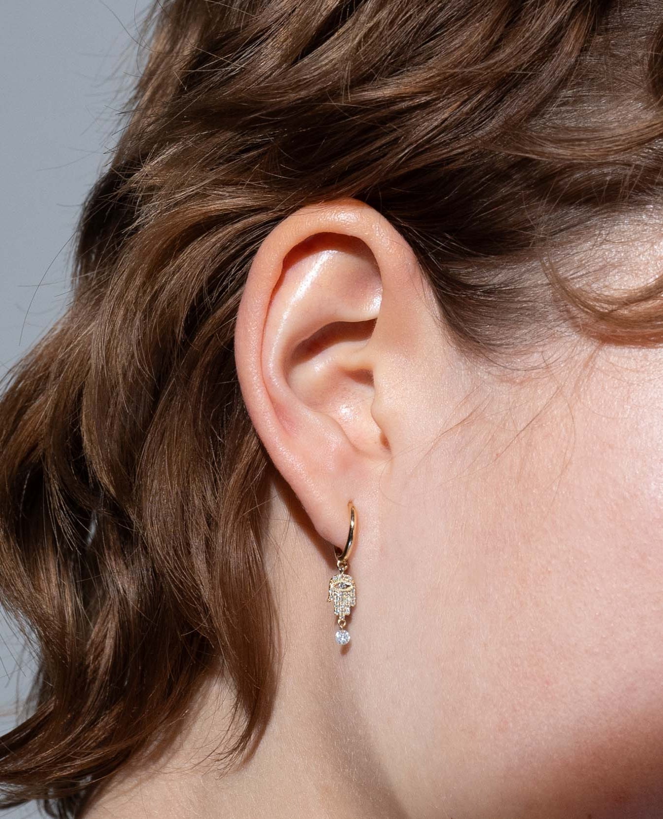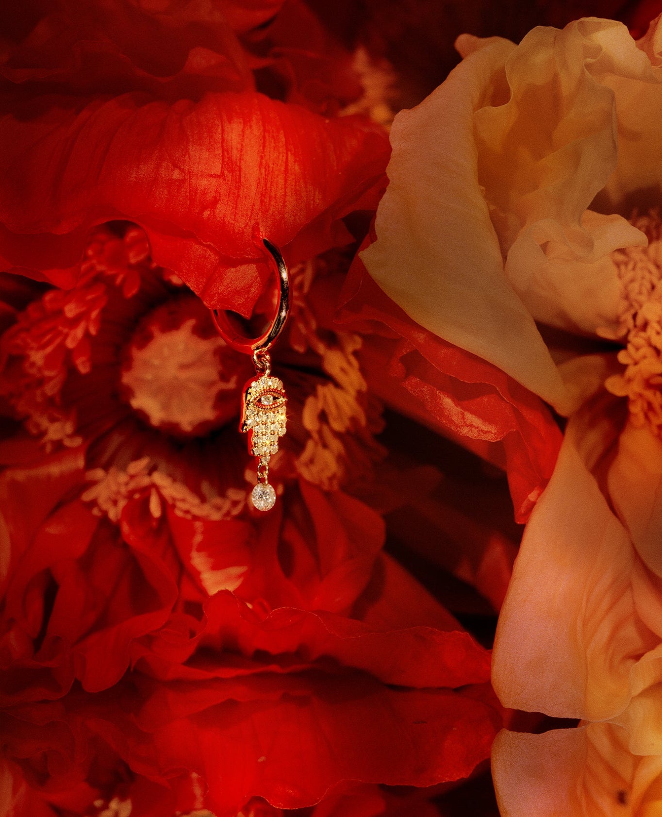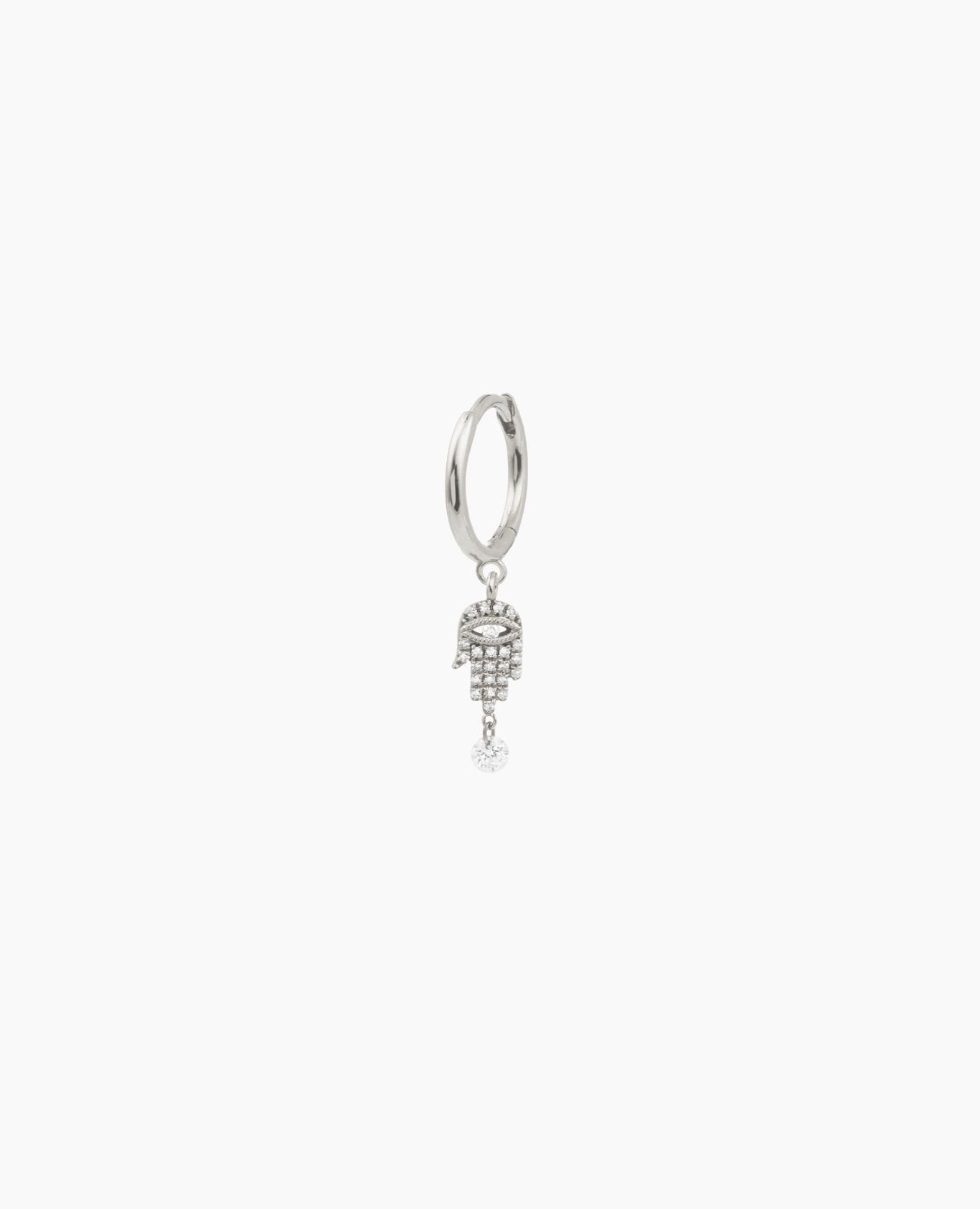 Cette boucle d'oreille fait partie de de la collection Séléné, hommage à la déesse de la Lune, convoque la symbolique protectrice de la main de Fatma et se porte comme un talisman que l’on ne quitte jamais.