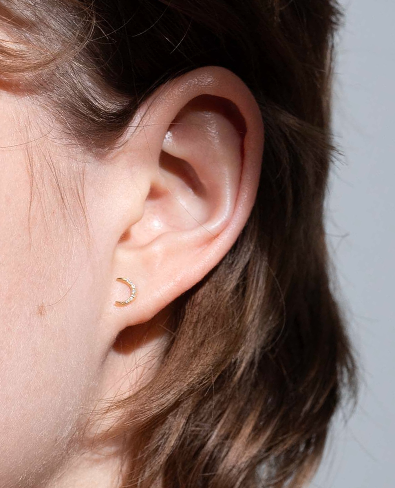 Persée Paris présente sa mini boucle d'oreille lune, issue de la collection Séléné, hommage à la déesse de la Lune.