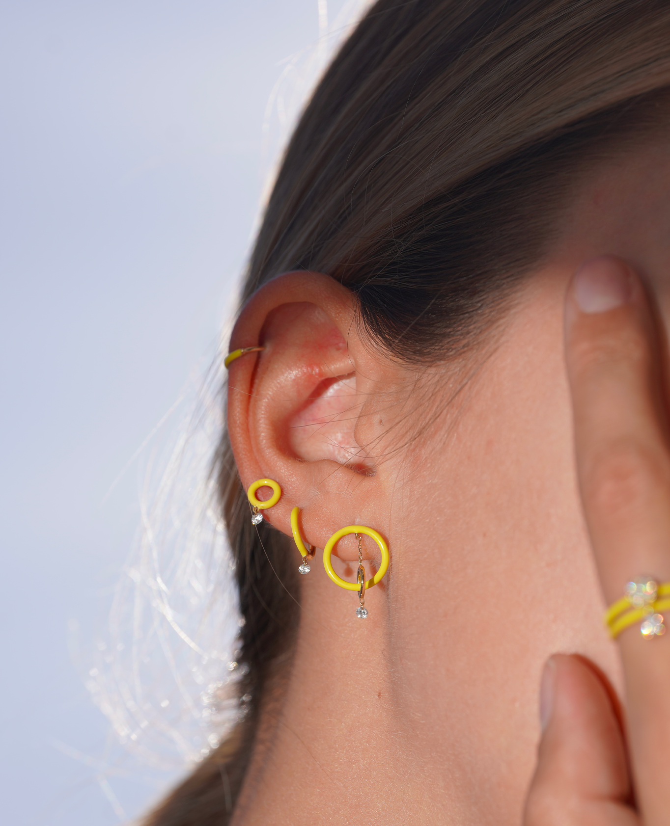 Boucle d'oreille Enamel, en or 18 carats et Diamant percé suspendu. Vendue à l'unité