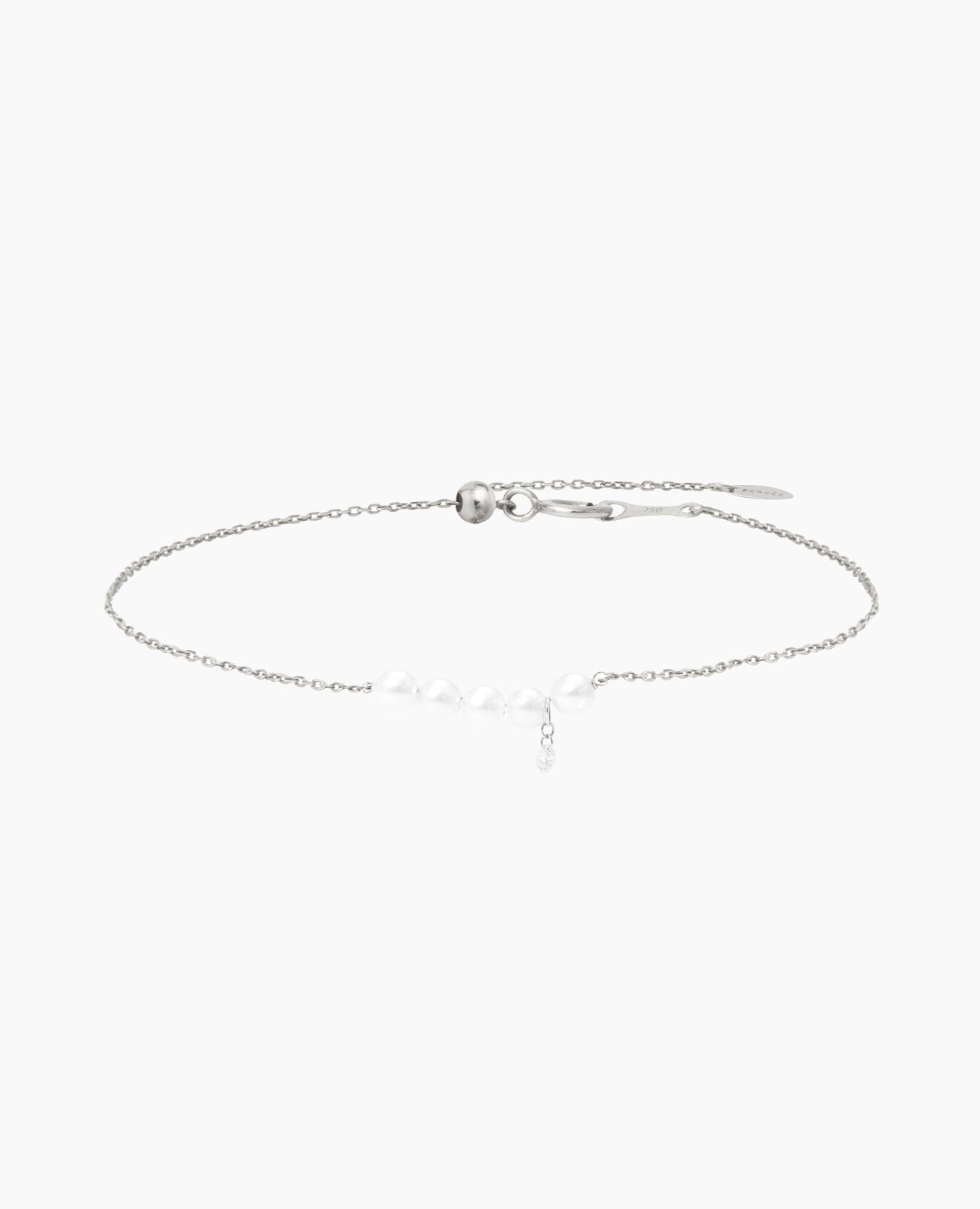 Bracelet Perlée en or 18 carats, perles de culture et diamant suspendu.