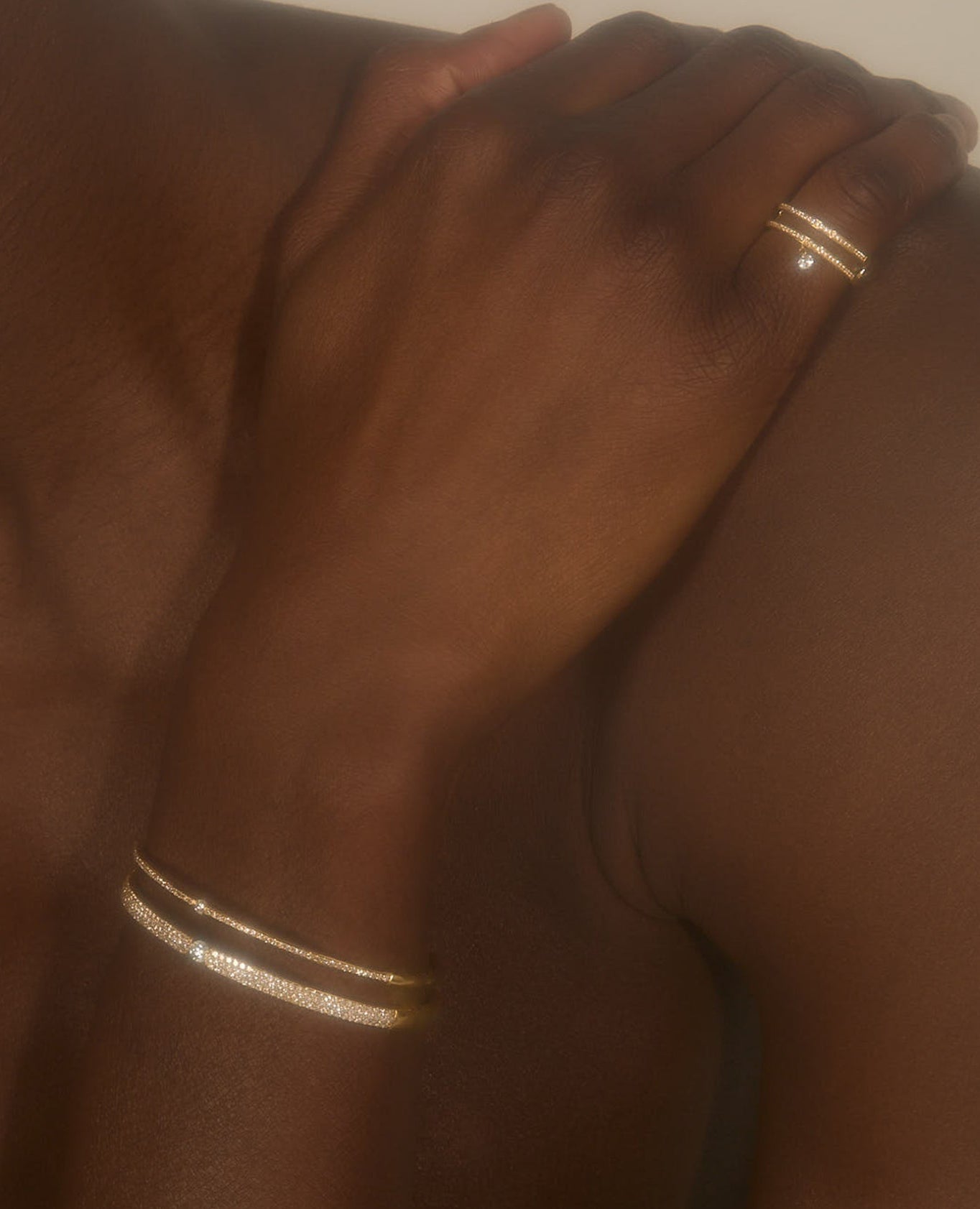 Avec son anneau d'or, symbole de force, et l'éclat de son diamant, le bracelet Zeus est un bijou qui se porte seul, ou marié à d'autres.