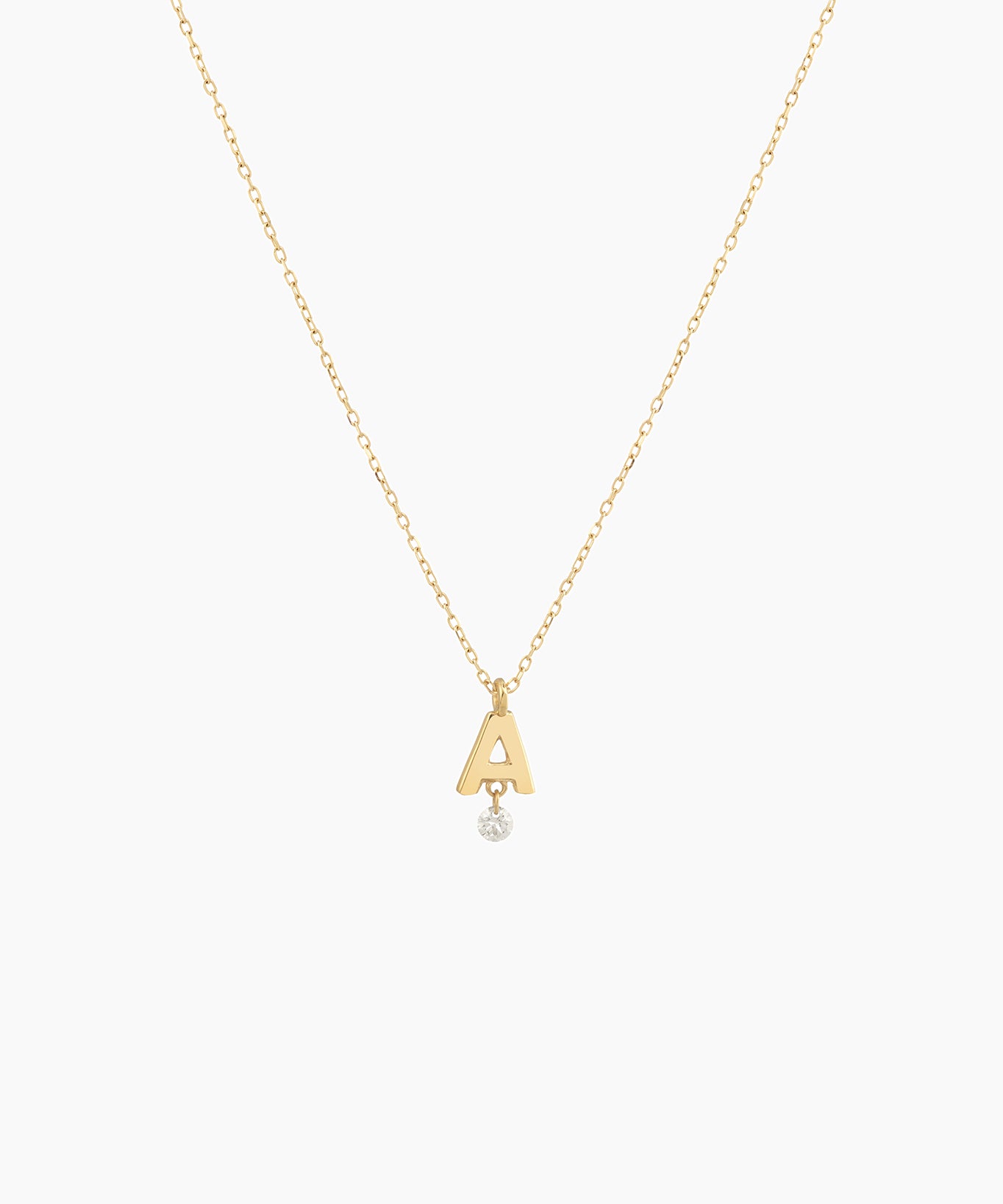 Collier Alphabet, en or 18 carats jaune et diamant suspendu. Choisissez votre initiale.