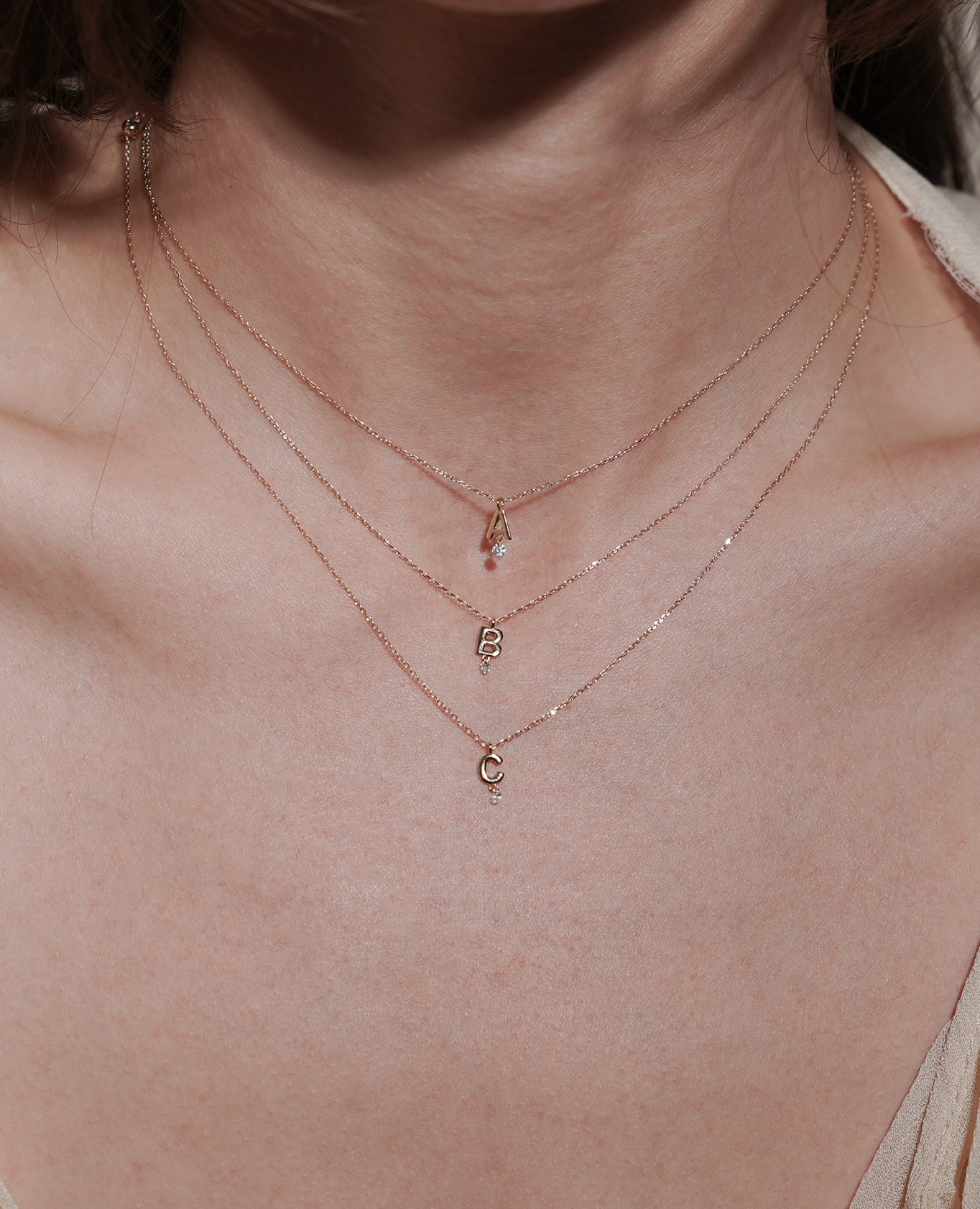 Son diamant suspendu évoque avec précieux, la beauté de cette initiale unique en or jaune 18 carats.