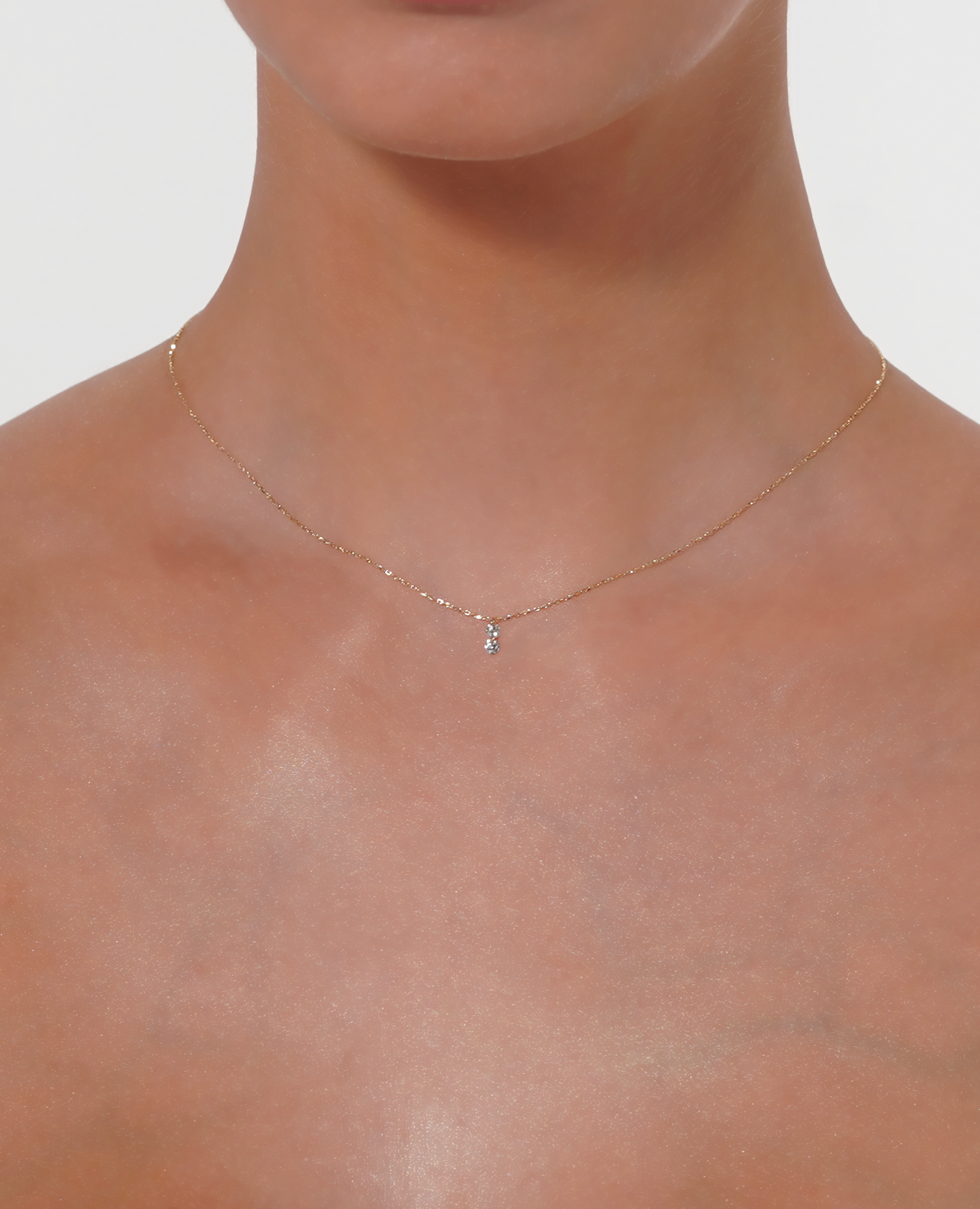 Collier minimaliste Danaé deux diamants — un bijou iconique signé Persée Paris.