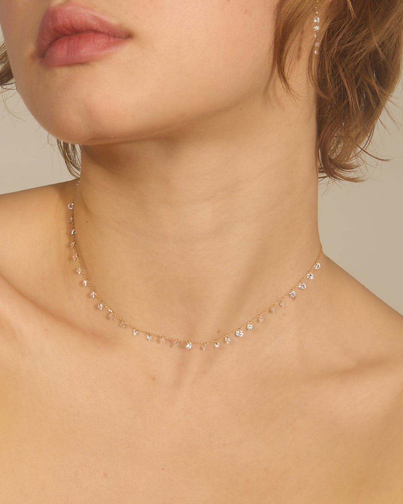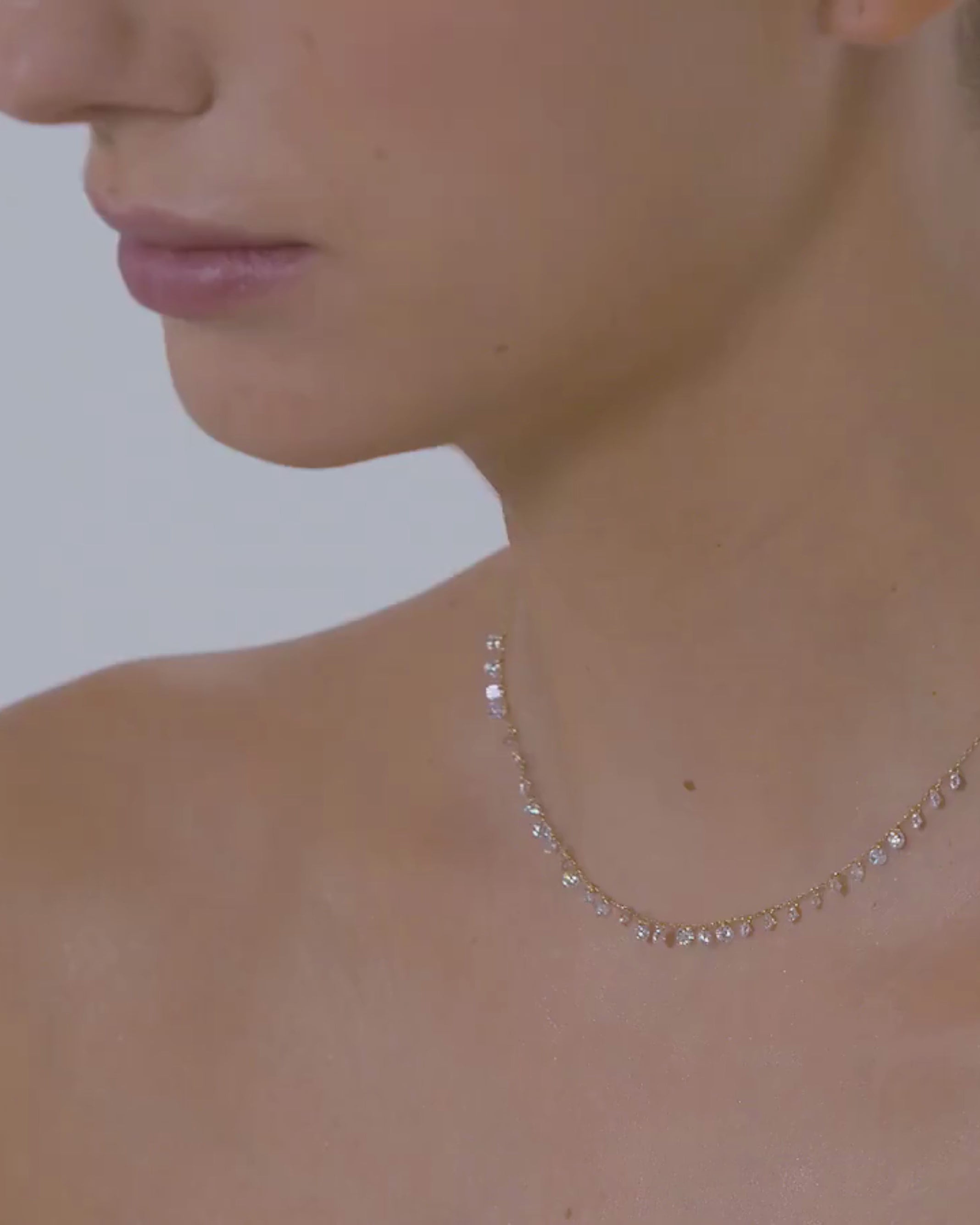 Collier minimaliste Danaé or 18 carats et 31 Diamants suspendus.