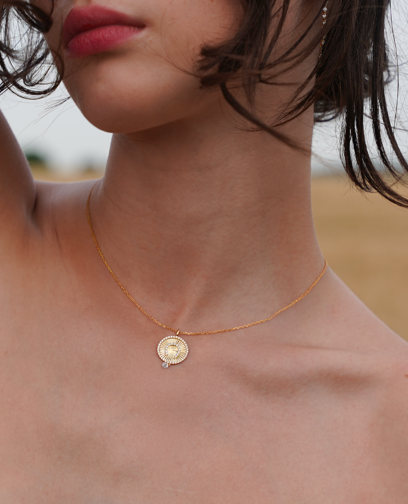 Collier médaillon Celeste – Symbole de chance et élégance en or 18 carats avec diamant percé