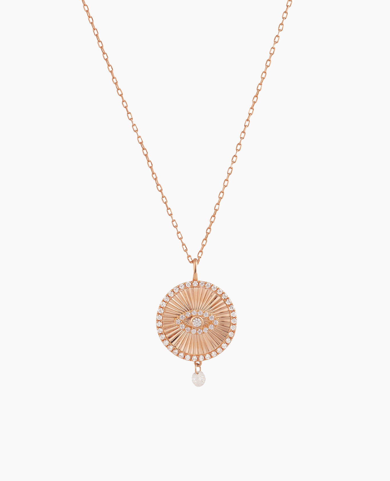Découvrez le collier médaillon Celeste, une pièce délicate en or 18 carats 750/1000, sublimée par un diamant naturel percé scintillant. Le médaillon gravé d’un œil, porte-bonheur intemporel, apporte une touche symbolique et raffinée à ce bijou minimaliste.