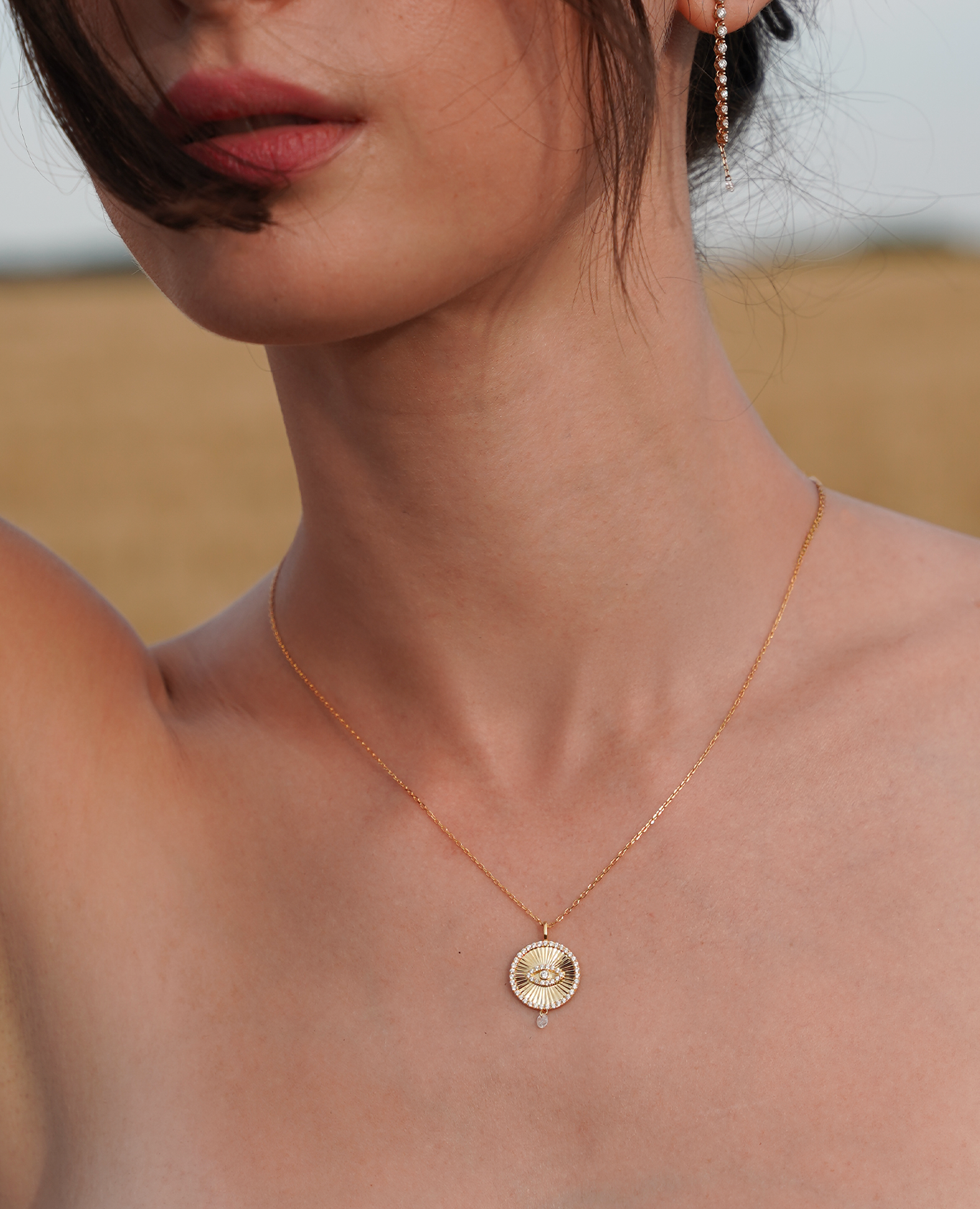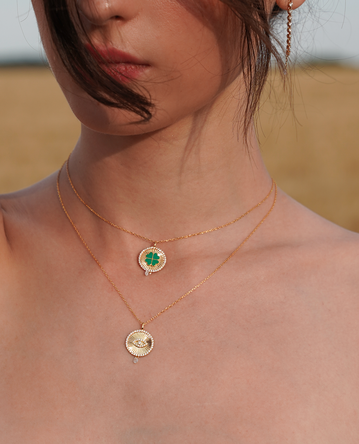 Collier médaillon Celeste – Symbole de chance et élégance en or 18 carats avec diamant percé