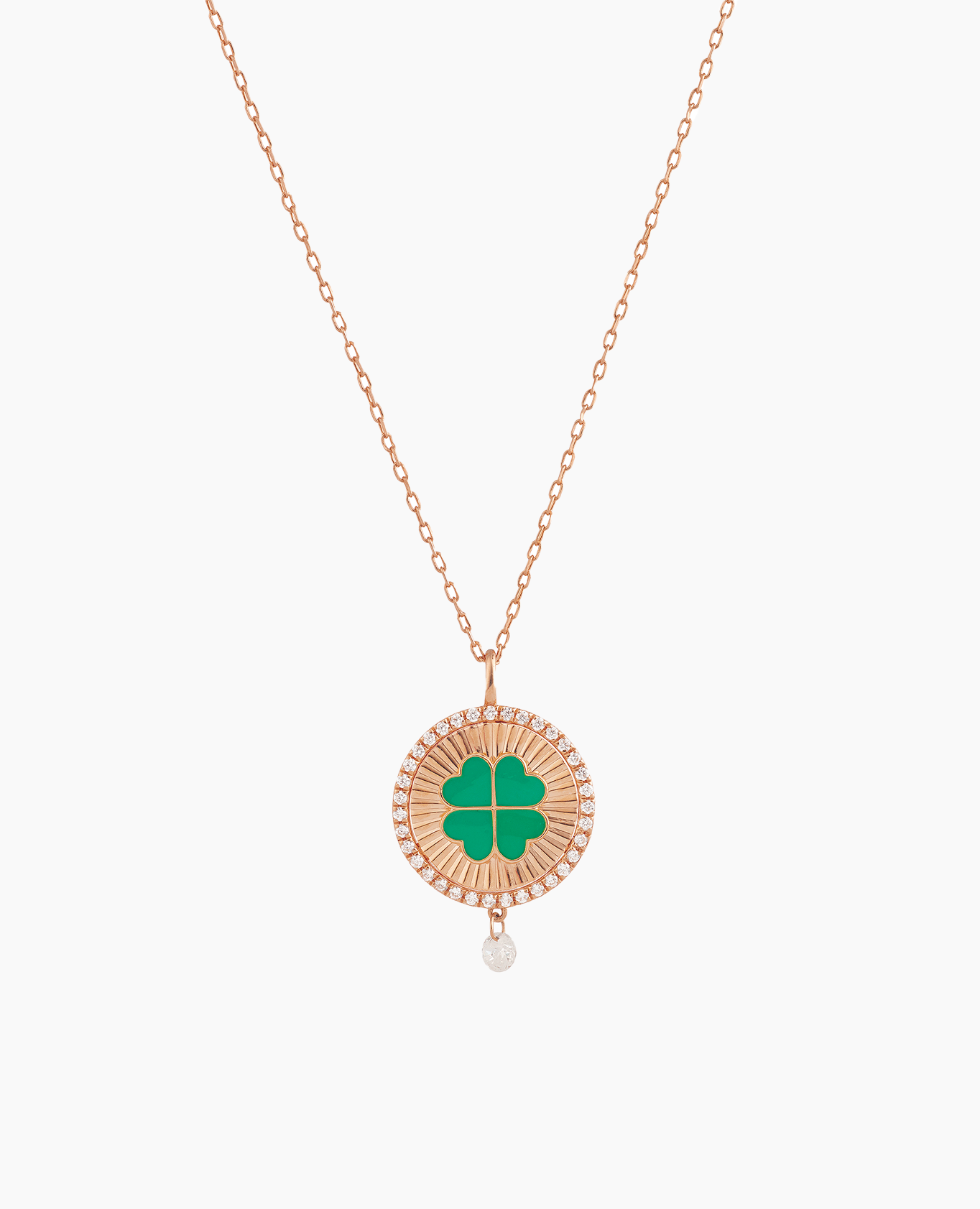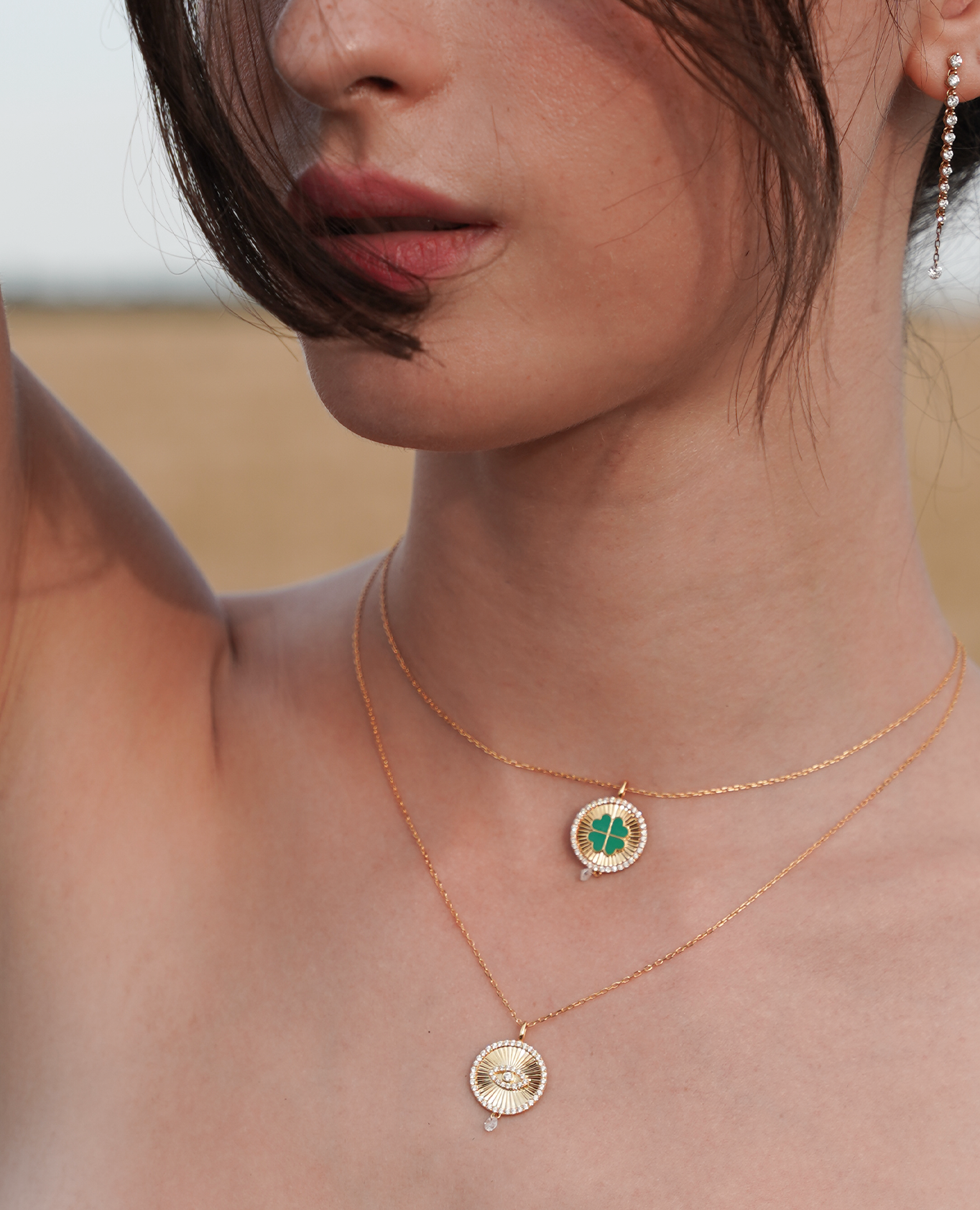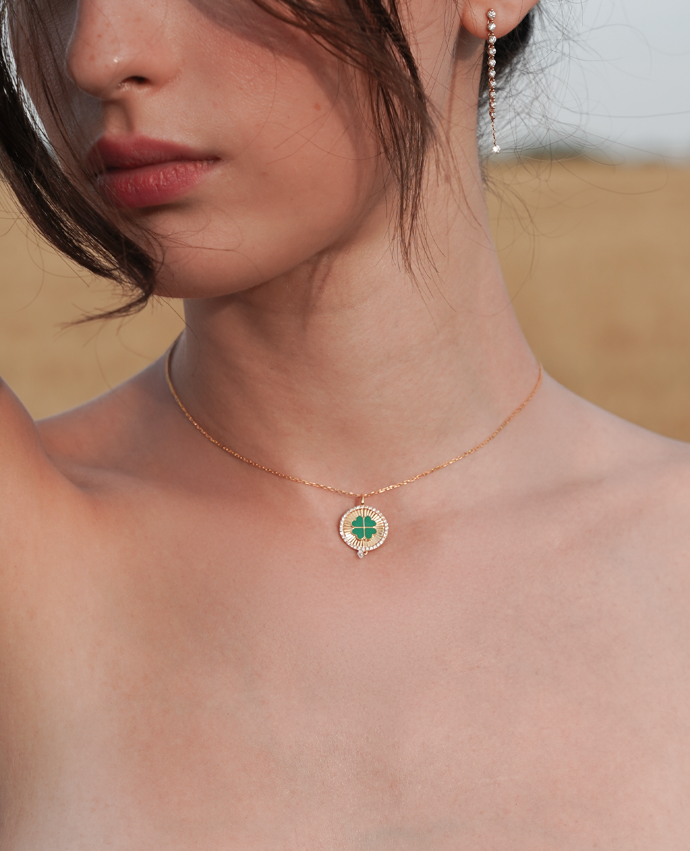 Collier médaillon Celeste – Symbole de chance et élégance en or 18 carats avec diamant percé