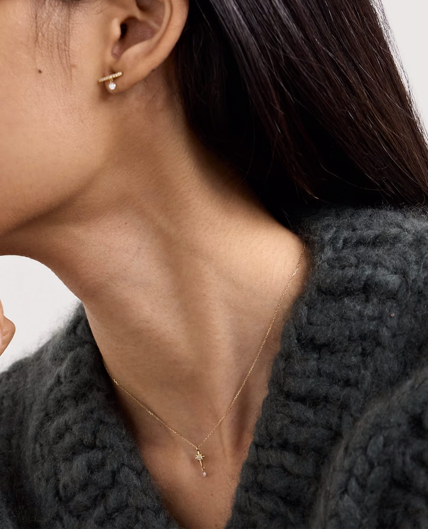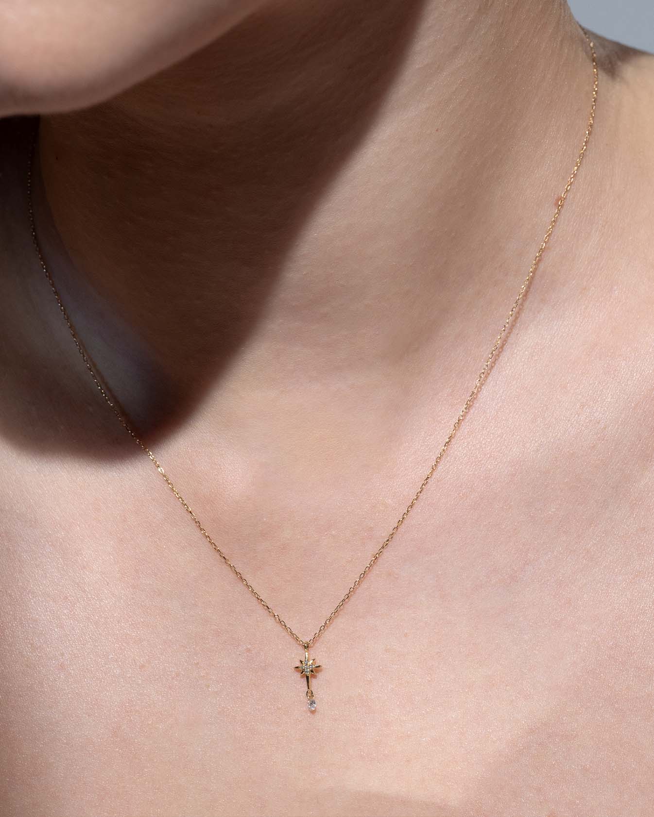 Persée Paris présente son collier orné d'une étoile polaire pavée de diamants et d'un diamant suspendu, issu de la collection Séléné.
