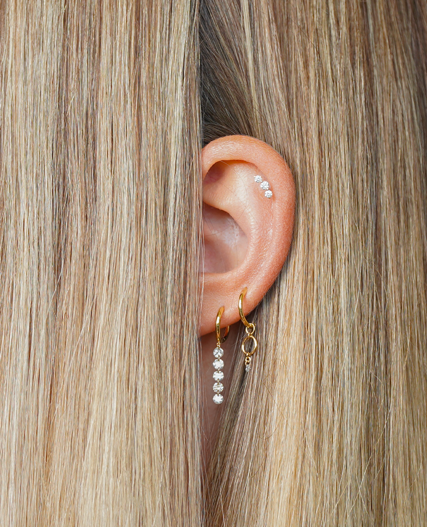 Ainsi, dans la collection Piercing by Persée, la pierre nue est mise en lumière au travers d'une mini boucle d'oreille à la fois précieuse et rebelle.